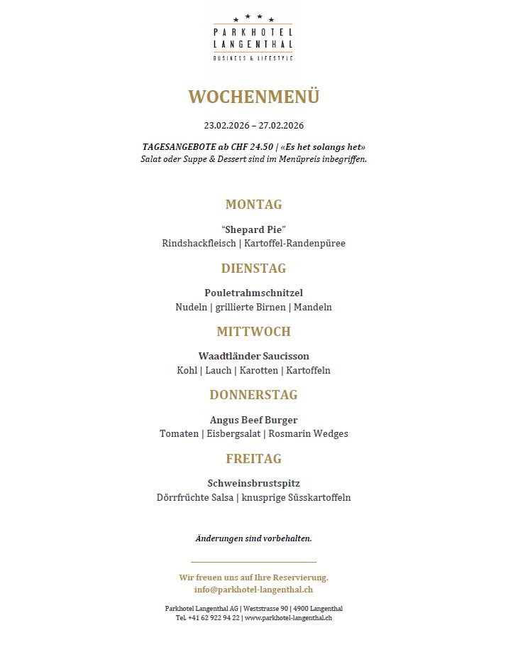 Am Sonntag finden sie hier wieder unser feines Mittagsmenü